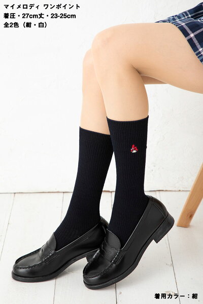 マイメロディのワンポイント刺繍がかわいいスクールソックスです。