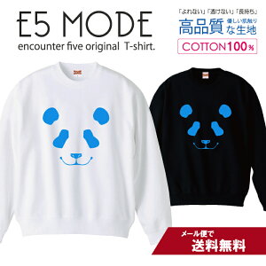 パンダ フェイス ブルー シンプルデザイン ビッグシルエット スウェット トレーナー ユニセックス メンズ レディース 長袖 綿100% コットン ゆったり 大きめ アメリカ規格 リブ付き 黒 白 ブラック ホワイト