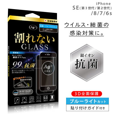 iPhoneSE (第二世代) ガラスフィルム ブルーライトカット iPhone se 保護フィルム 抗菌 全面保護 iPhone8 iPhone7 iPhone6s アイフォンSE 8 7 6s 6 割れない 繊維ガラス フィルム ブルーライトカット 日本製 3D