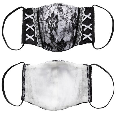マスク中心部分は黒レースを重ねフリルやレースをたっぷり使用した贅沢な作り。
